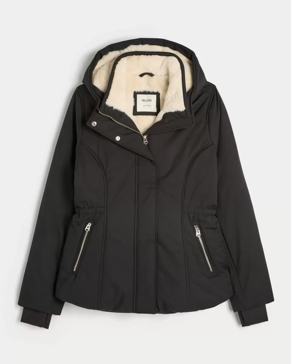 Twoja nowa ulubiona kurtka ma supermiękką podszewkę ze sztucznego futra, zapięcie na suwak z zatrzaskami i kieszenie z przodu zapinane na suwak. Kaptur, mankiety przeciwsztormowe z otworami na kciuki, kieszeń wewnętrzną. Importowane.