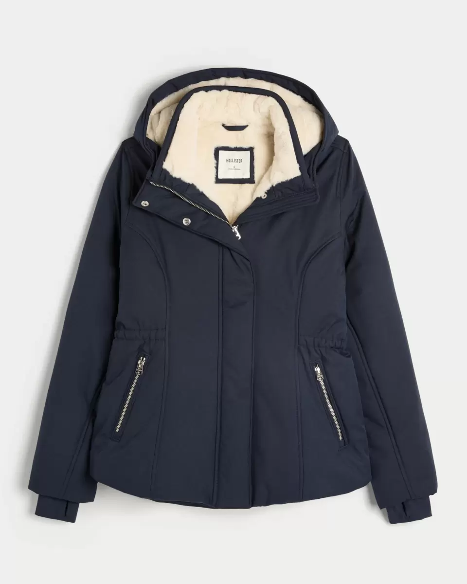 Twoja nowa ulubiona kurtka ma supermiękką podszewkę ze sztucznego futra, zapięcie na suwak z zatrzaskami i kieszenie z przodu zapinane na suwak. Kaptur, mankiety przeciwsztormowe z otworami na kciuki, kieszeń wewnętrzną. Importowane.