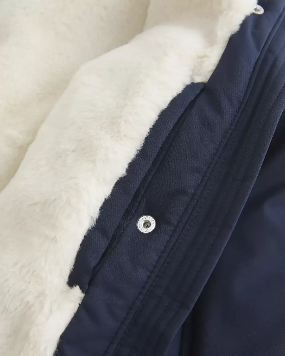 Podszewka ze sztucznego futra: 100% poliester / Wypełnienie: 100% włókna poliestrowe z recyklingu / Torba kieszonkowa: 100% poliester / Powłoka zewnętrzna: 100% poliester / Podszewka rękawów i boków: 100% poliester / Wypełnienie elementu konstrukcyjnego: 100% włókna poliestrowe