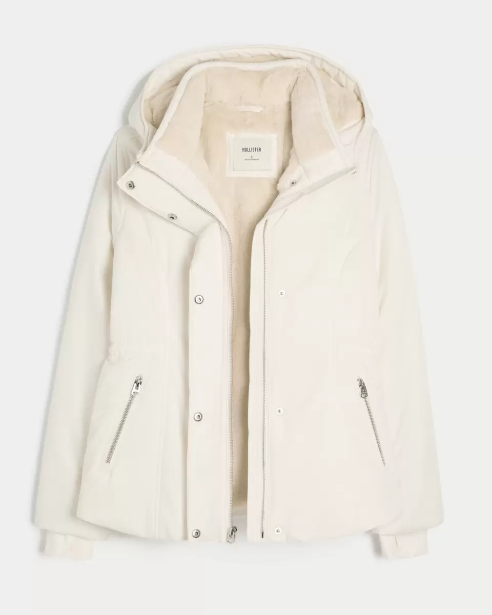 Ta superwygodna kurtka ma przytulną podszewkę ze sztucznego futra, zapięcie na suwak z zatrzaskami i kaptur wyściełany sztucznym futrem. Przednie kieszenie zapinane na suwak, mankiety przeciwsztormowe z otworami na kciuki. Importowane.