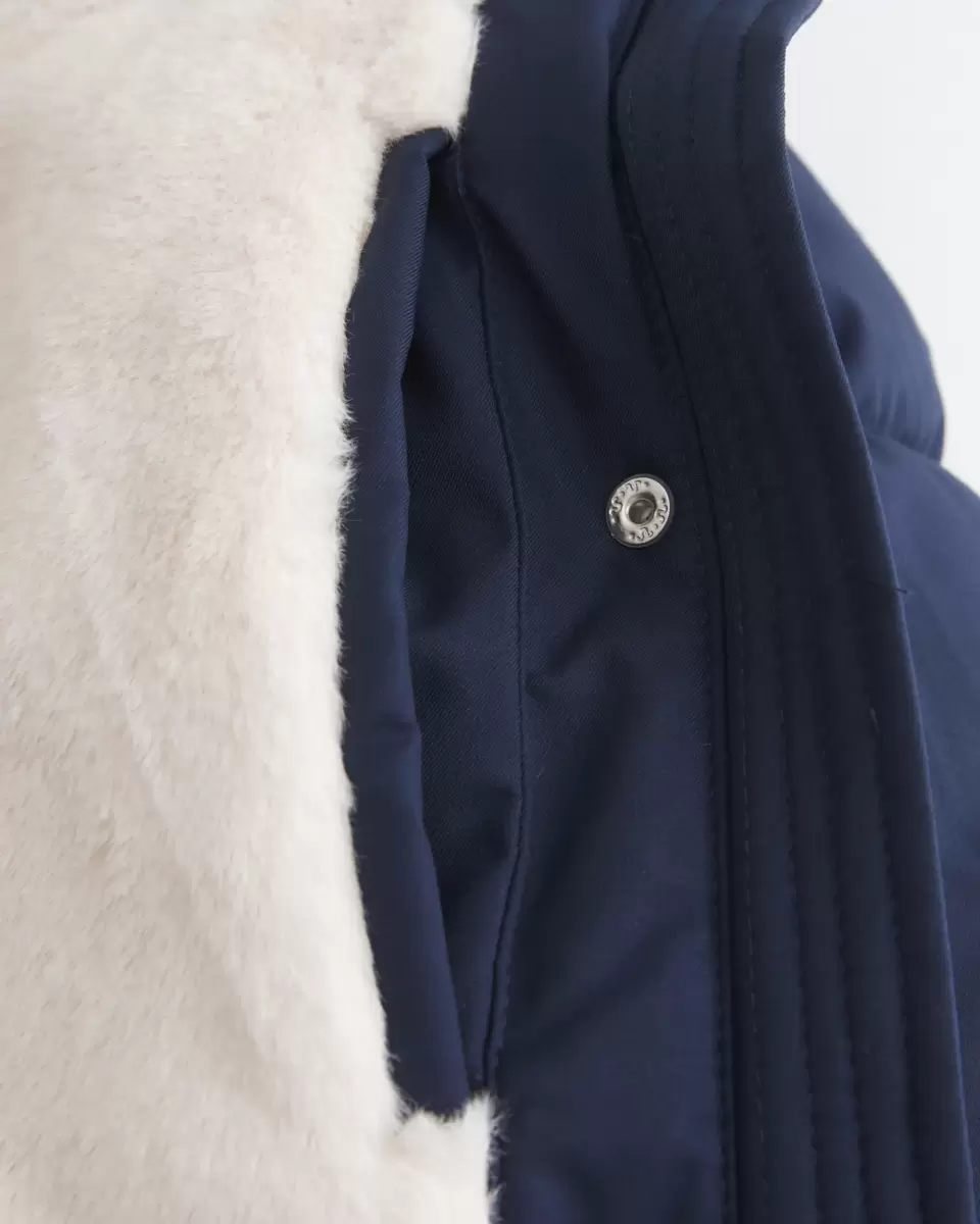 Twoja nowa ulubiona kurtka ma przytulną podszewkę ze sztucznego futra, kołnierz w kształcie półgolfa i kaptur wyściełany sztucznym futrem. Pikowane lamówki, przednie kieszenie zapinane na zamek, mankiety przeciwsztormowe z otworami na kciuki. Importowane.