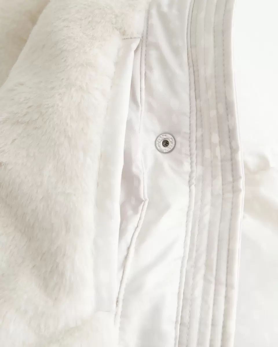 Twoja nowa ulubiona kurtka ma przytulną podszewkę ze sztucznego futra, kołnierz w kształcie półgolfa i kaptur wyściełany sztucznym futrem. Pikowane lamówki, przednie kieszenie zapinane na zamek, mankiety przeciwsztormowe z otworami na kciuki. Importowane.