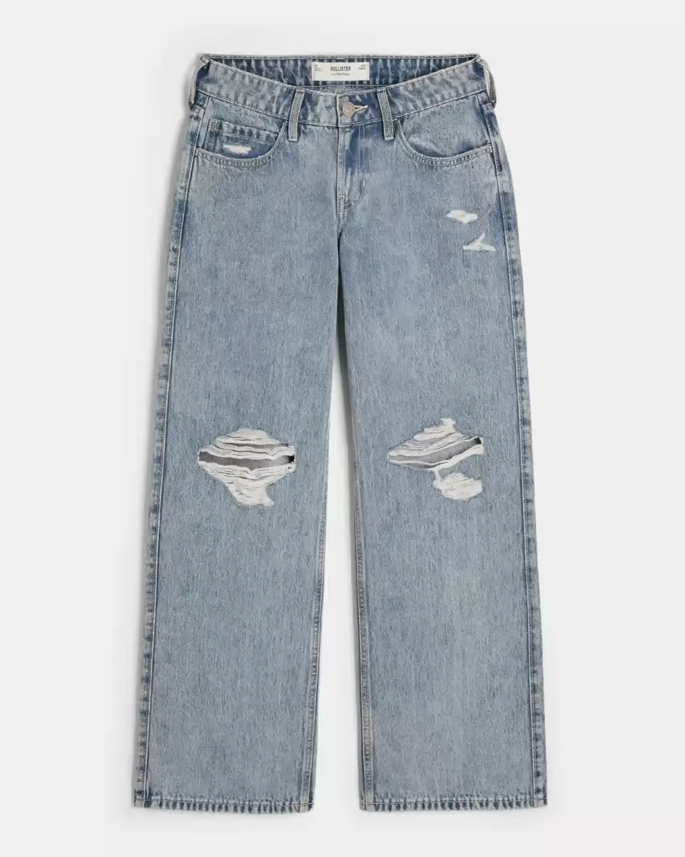 Wygodne jeansy z niskim stanem i luźnymi nogawkami. Średnio sprane, z przetarciami. Importowane.