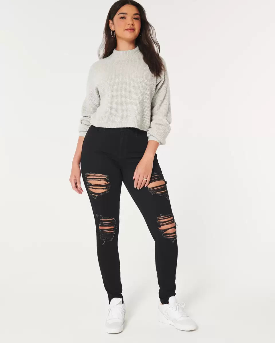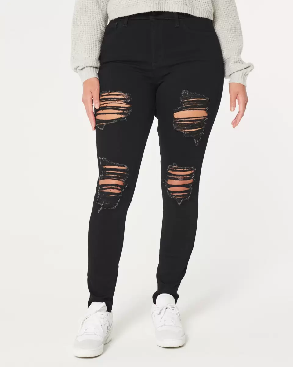 Zaprojektowane w naszym charakterystycznym, dopasowanym kroju z superwęższymi nogawkami, te podarte czarne dżinsy są wykonane z niezwykle wygodnego denimu Soft Stretch. Podwyższony stan. Importowane.