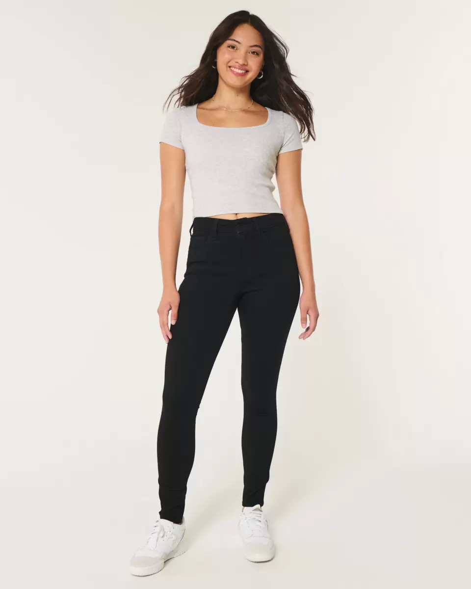 Zaprojektowane w naszym charakterystycznym, dopasowanym kroju, te czarne, super obcisłe dżinsy mają krągły, wysoki stan i są elastyczne. Importowane.