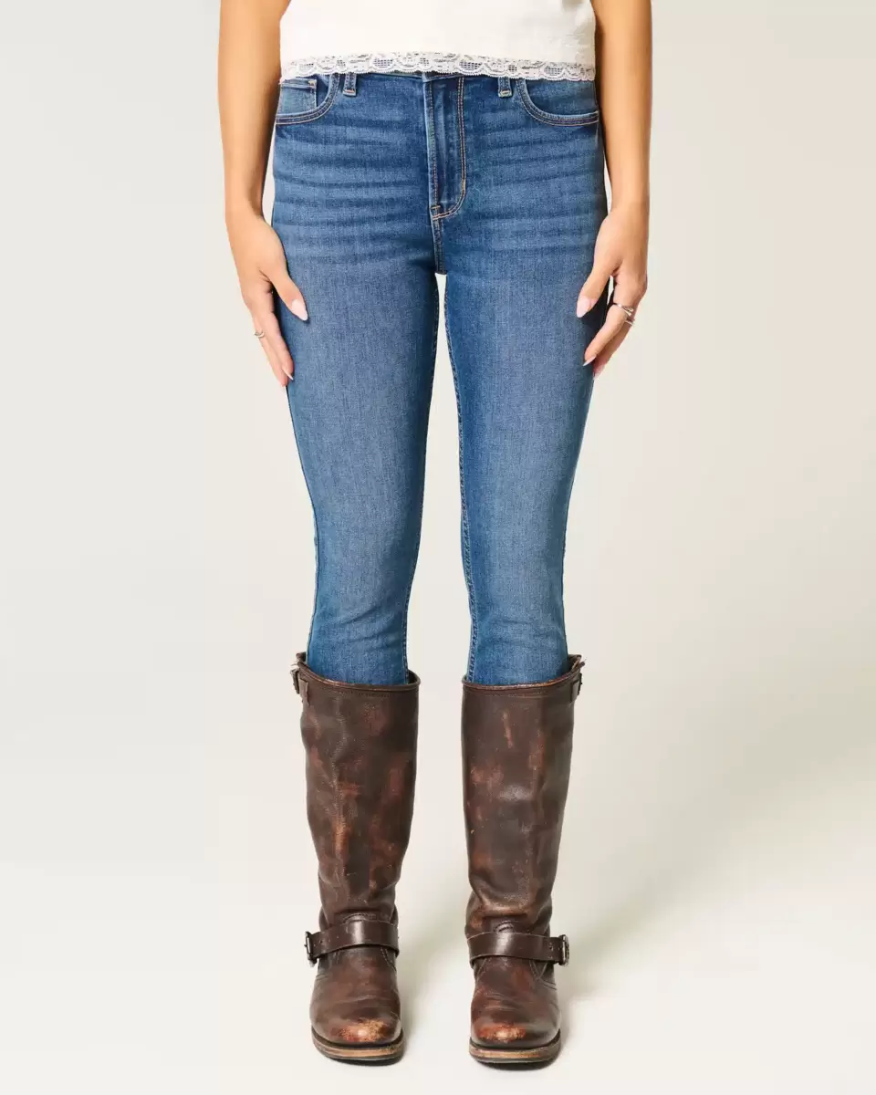 Jeansy Super Skinny z wysokim stanem i ciemnym spraniem