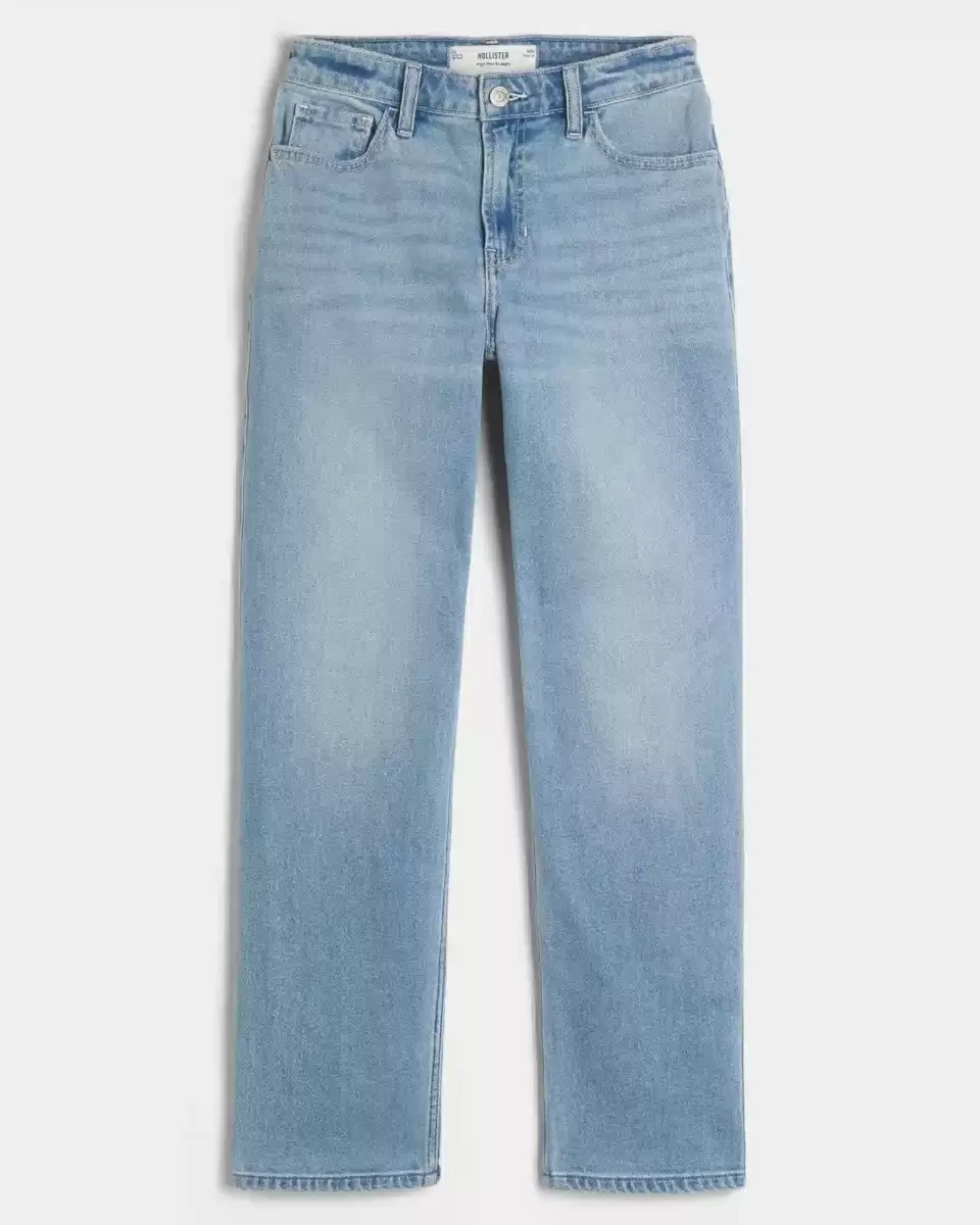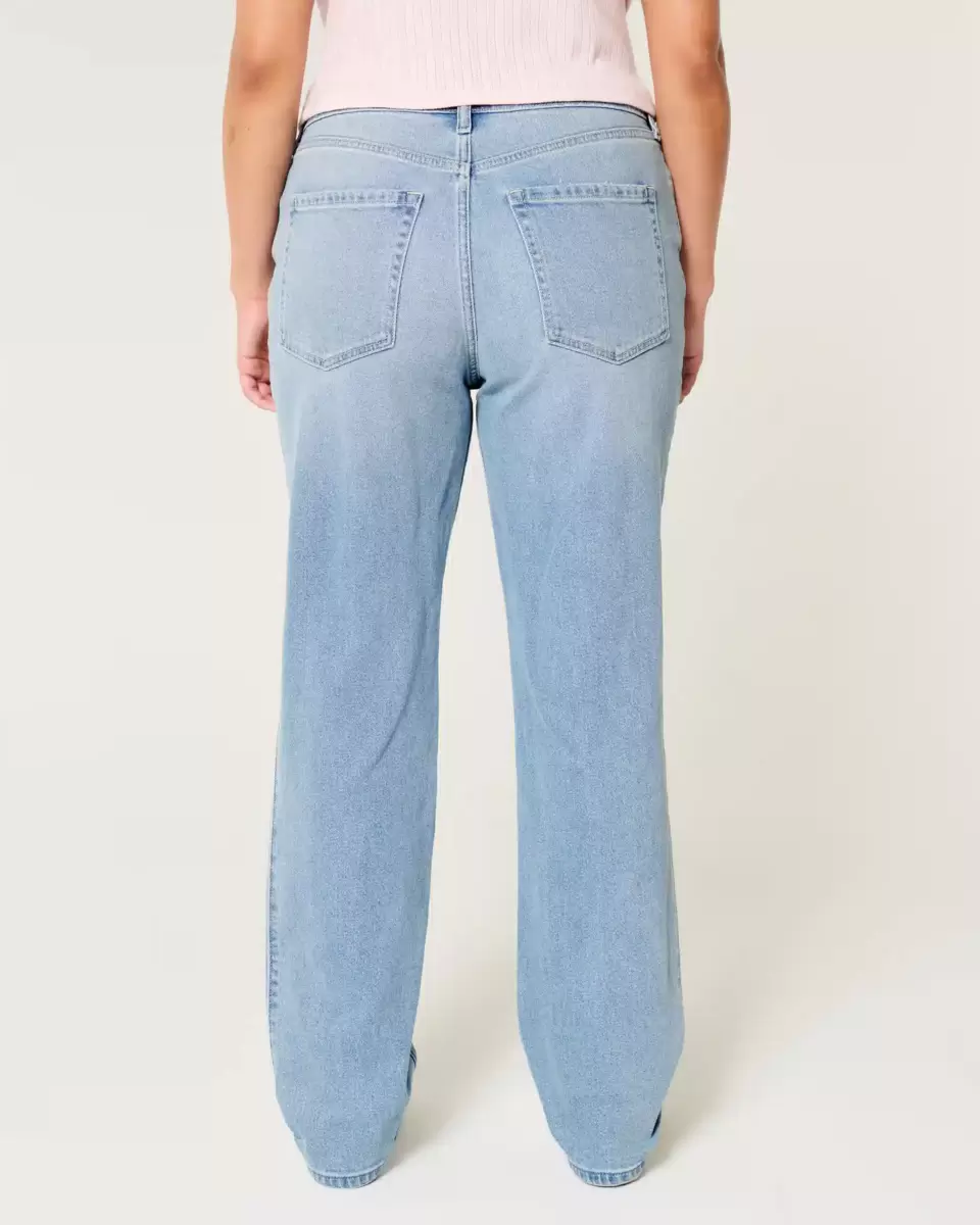 Śliczne i wygodne jeansy w jasnym kolorze ze przetarciami i wąsami, zaprojektowane z podkreślającym figurę wysokim stanem i prostą nogawką. Importowane.