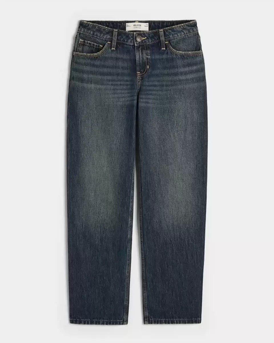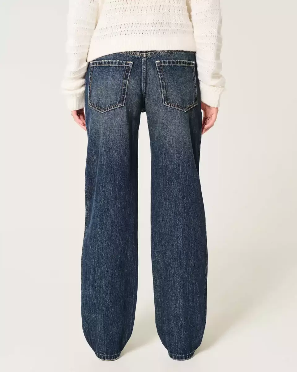 Luźne jeansy z niskim stanem i ciemnym spraniem