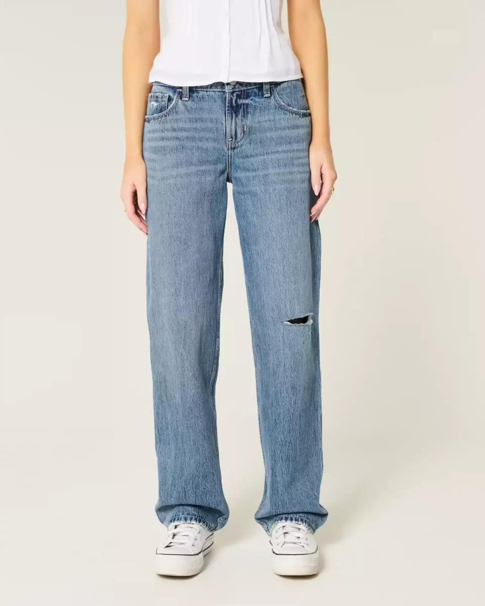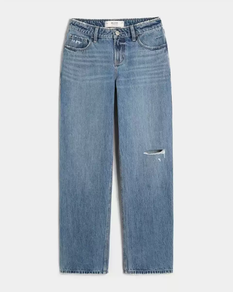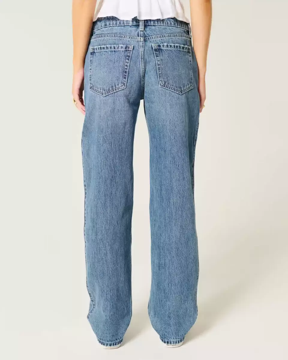 Wygodne jeansy z niskim stanem i luźnymi nogawkami. Wyblaknięcia, przetarcia, przetarcia, średnie spranie. Importowane.