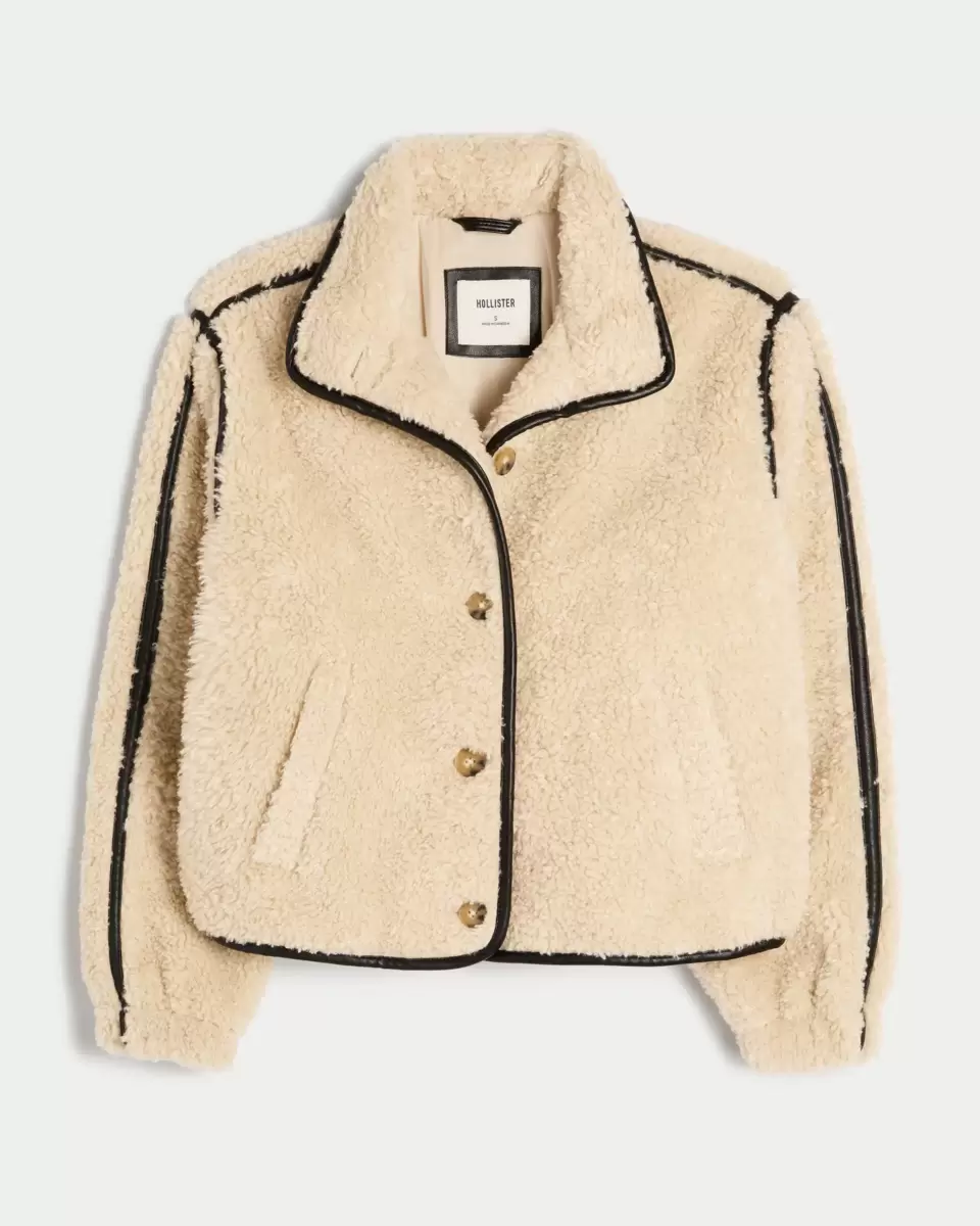 Urocza kurtka w stylu motocyklowym, uszyta z supermiękkiej tkaniny sherpa. Wykończenie ze sztucznej skóry, zapięcie na guziki, kieszenie, podszewka w całości. Importowane.