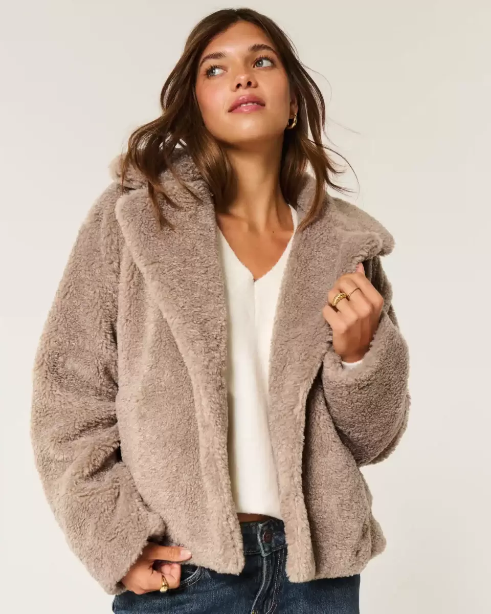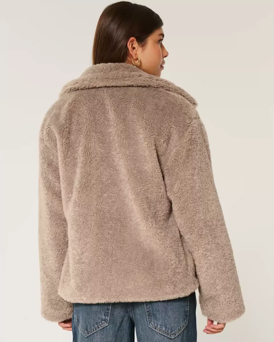 Ten uroczy i przytulny płaszcz typu peacoat ma supermiękką zewnętrzną stronę z kożucha i zapięcie na guziki. Kołnierz, kieszenie z przodu, kieszeń wewnętrzna, w pełni podszyty. Produkt importowany.