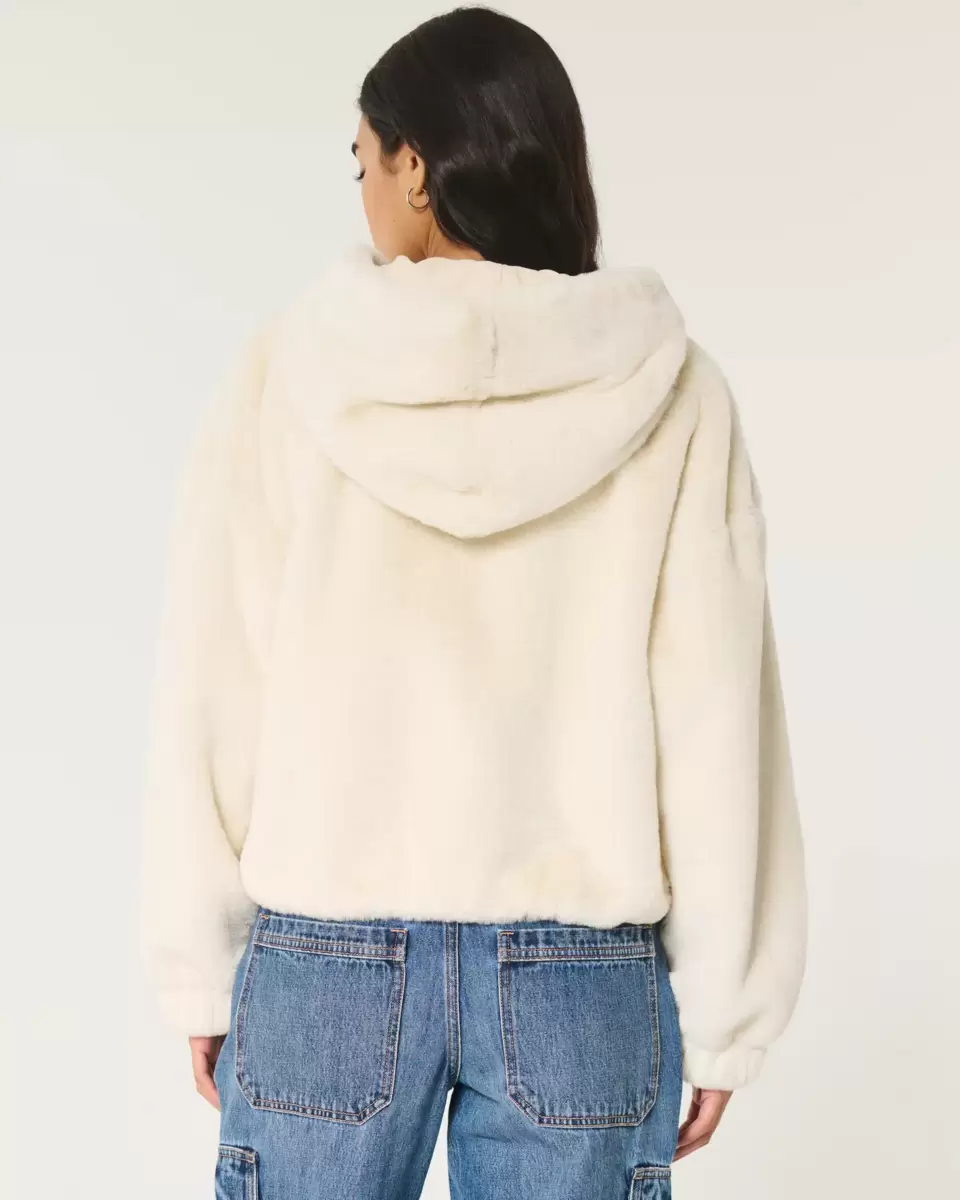 Ta urocza bluza z kapturem wykonana jest z supermiękkiego sztucznego futra i ma zamek błyskawiczny na całej długości, kieszenie wewnętrzne i przednie. Ściągacze przy mankietach, kaptur, w pełni podszyta. Produkt importowany.
