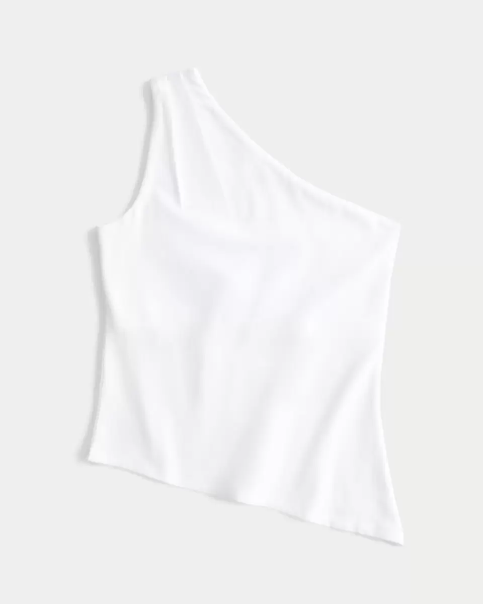 Uroczy i supermiękki top o kroju na jedno ramię i asymetrycznym dole. Marszczenia na ramiączkach, wbudowany biustonosz. Dopasowany krój. Produkt importowany.