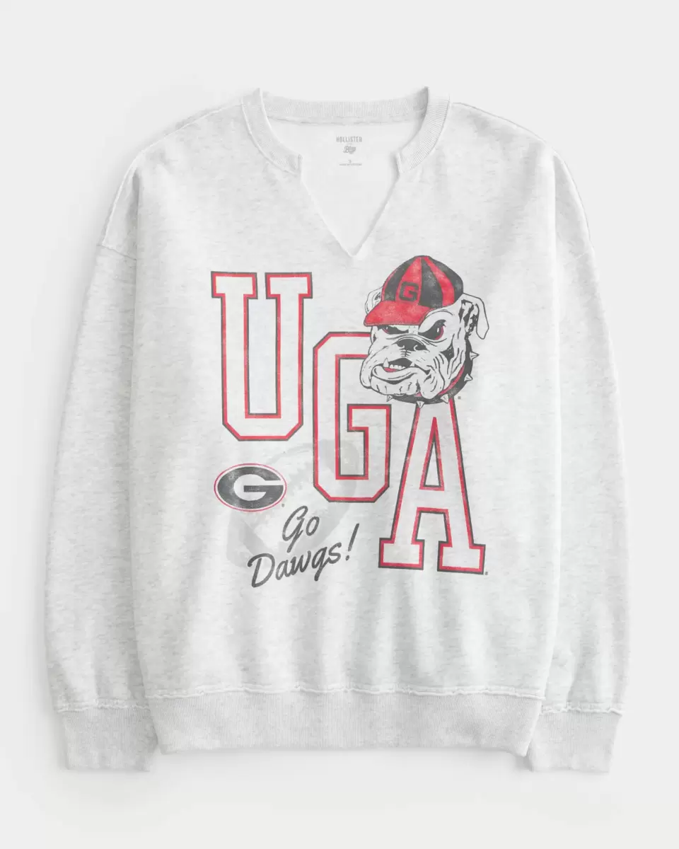 Supermiękka bluza polarowa z oficjalnym, licencjonowanym nadrukiem University of Georgia UGA Dawgs, wycięciem w dekolcie i długimi rękawami. Luźny krój. Produkt importowany.