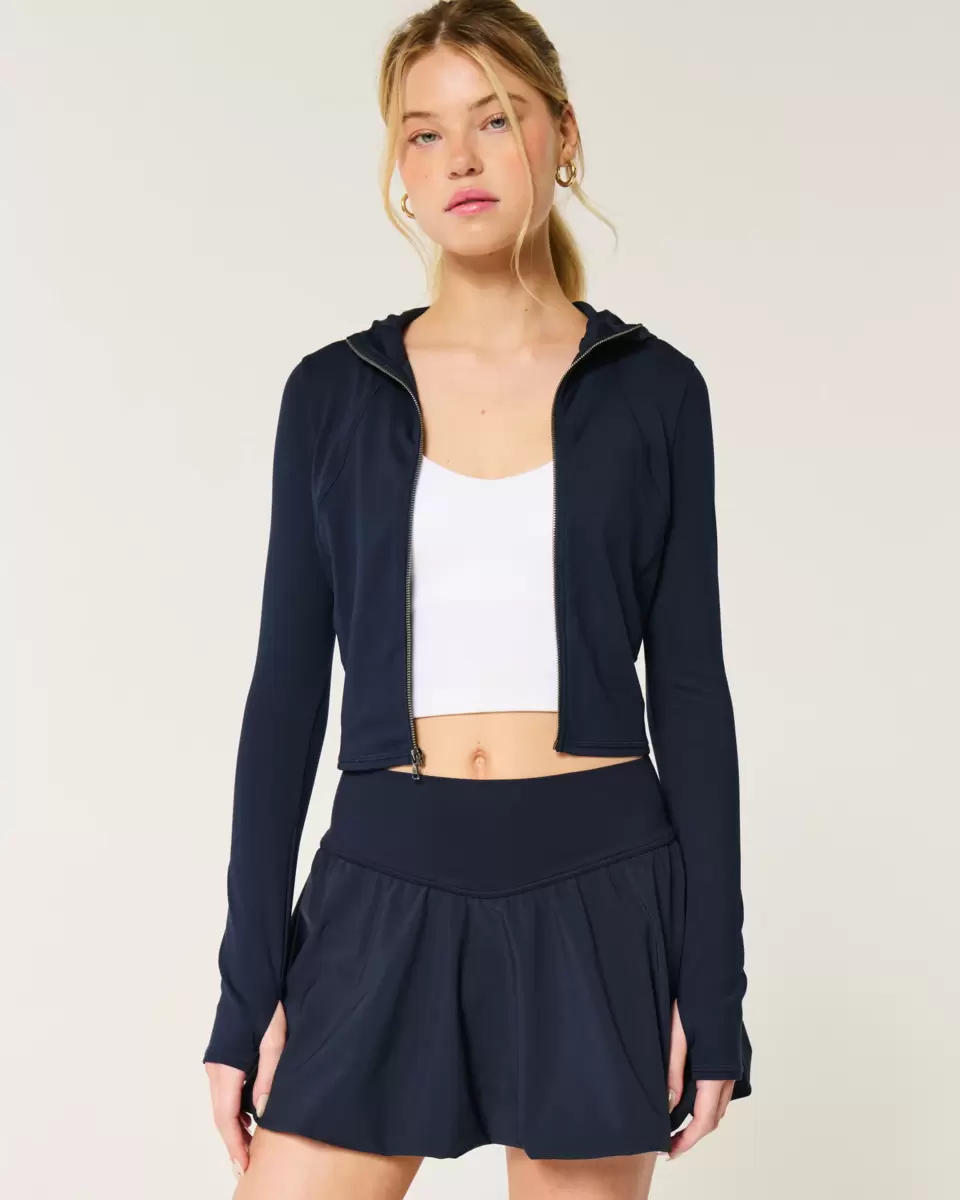 Ta superurocza bluza z kapturem została wykonana z oddychającego, rozciągliwego w czterech kierunkach, odprowadzającego wilgoć materiału Recharge o supermiękkim, szczotkowanym wykończeniu. Długie rękawy, zapięcie na suwak, kaptur. Dopasowany krój. Importowane.