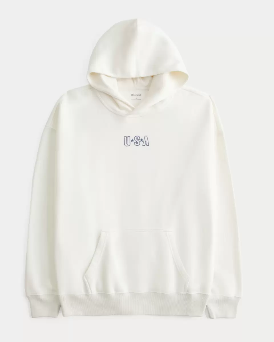 Supermiękka bluza z kapturem z polaru z haftowaną grafiką USA, kapturem i kieszenią kangurką z przodu. Długie rękawy. Luźny krój. Produkt importowany.