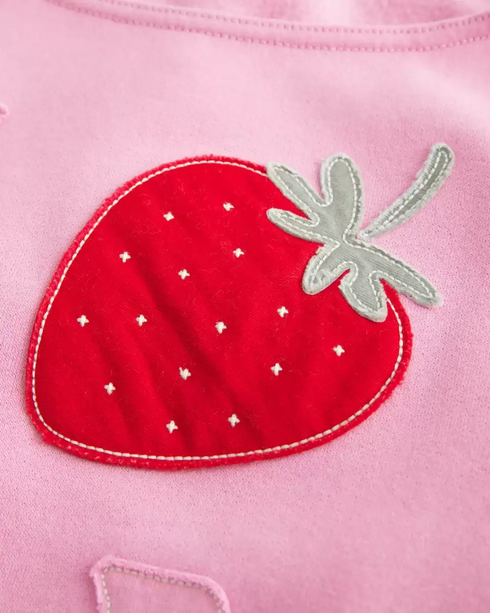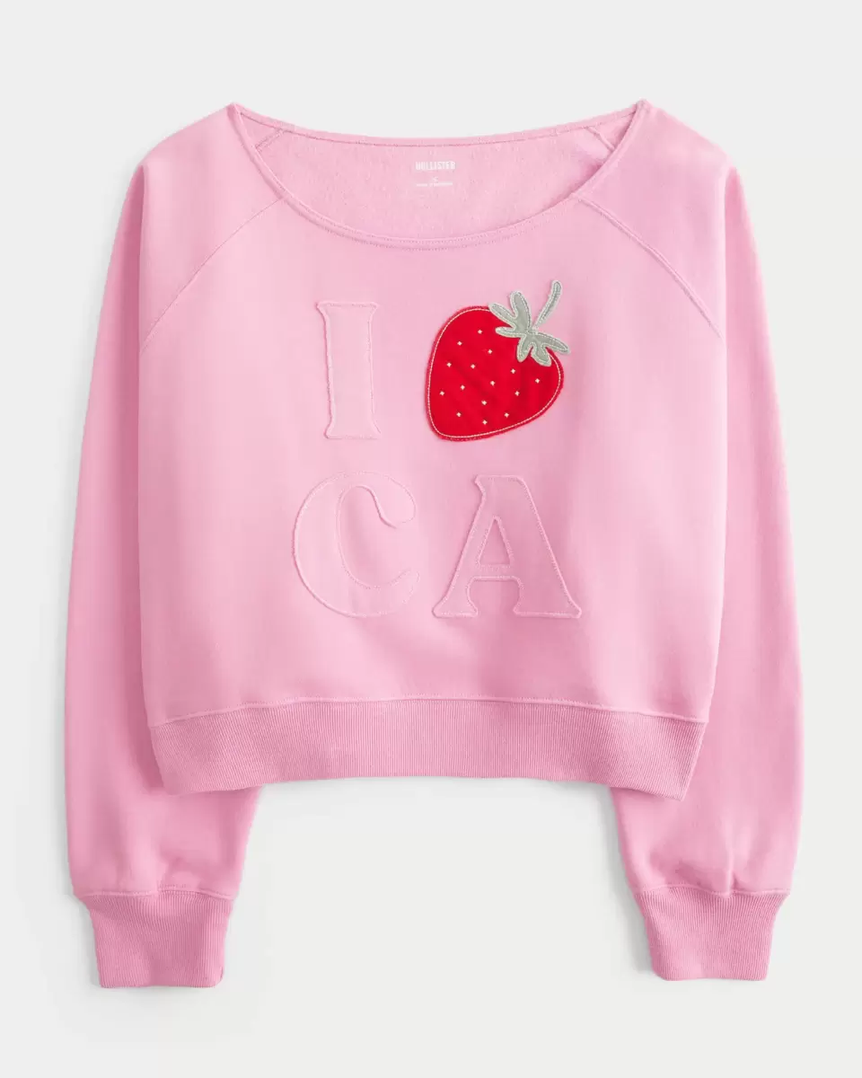 Supermiękka bluza polarowa z aplikacją graficzną I Heart CA i uroczym detalem w kształcie jagód. Dekolt odsłaniający ramiona, długie rękawy. Łatwo się układa. Produkt importowany.