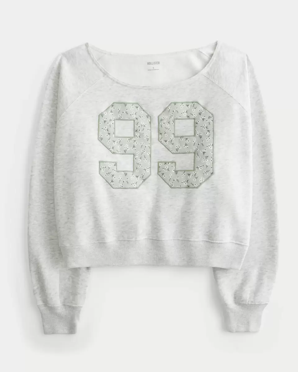 Supermiękka bluza polarowa z aplikacją z numerem i dekoltem odsłaniającym ramiona. Długie rękawy. Łatwe dopasowanie. Importowane.