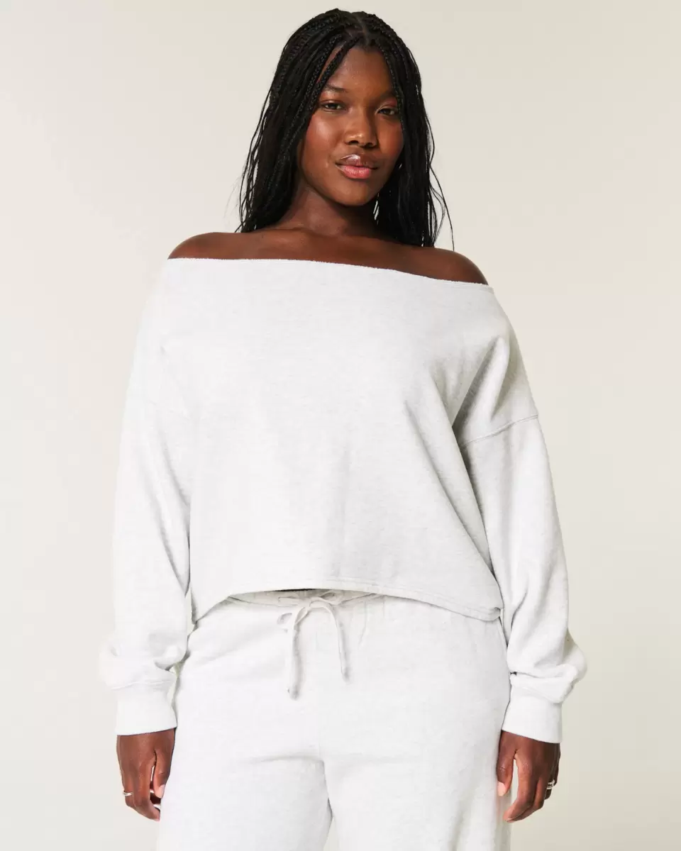 Przytulna i supermiękka bluza z długimi rękawami i dekoltem odsłaniającym ramiona. Dobrze się układa. Produkt importowany.