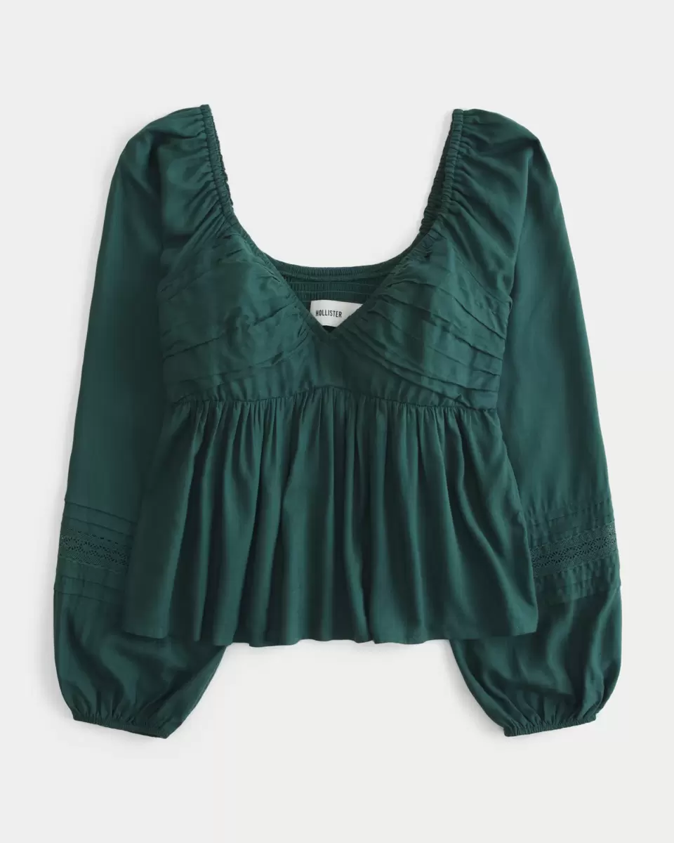 Śliczny i supermiękki top o kroju babydoll, z marszczeniami na biuście i koronkowymi wstawkami na rękawach. Miękkie marszczenia na plecach, długie rękawy. Łatwo się zakłada. Importowane.