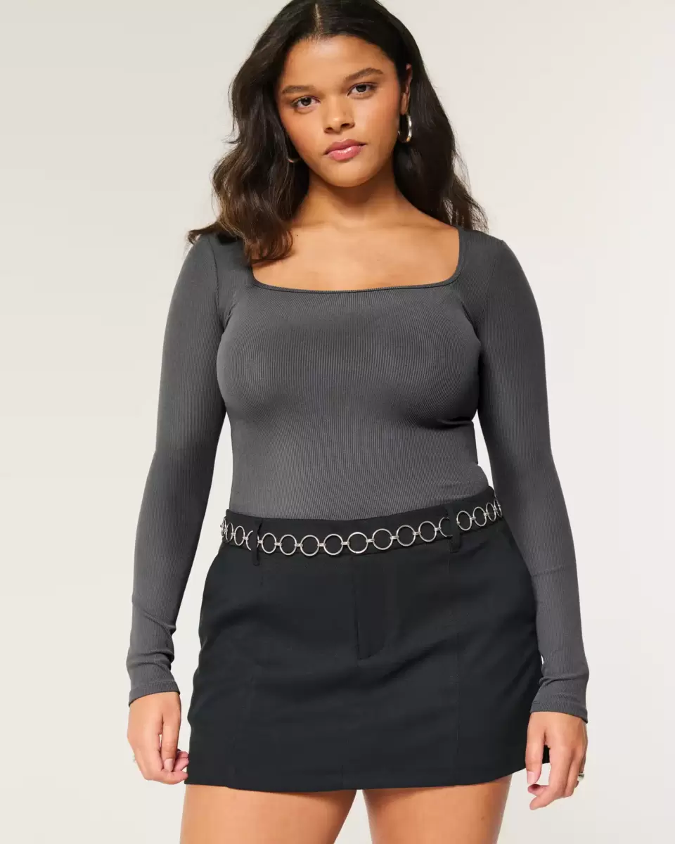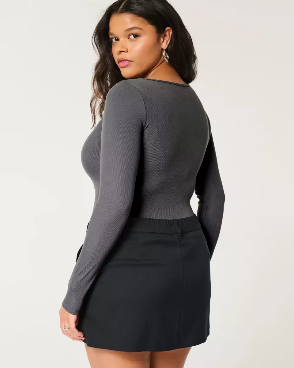 Ultrawygodne i supermiękkie body wykonane z przytulnej prążkowanej tkaniny o bezszwowym wyglądzie i fakturze. Kwadratowy dekolt, długie rękawy, zapięcie na zatrzaski u dołu. Produkt importowany.