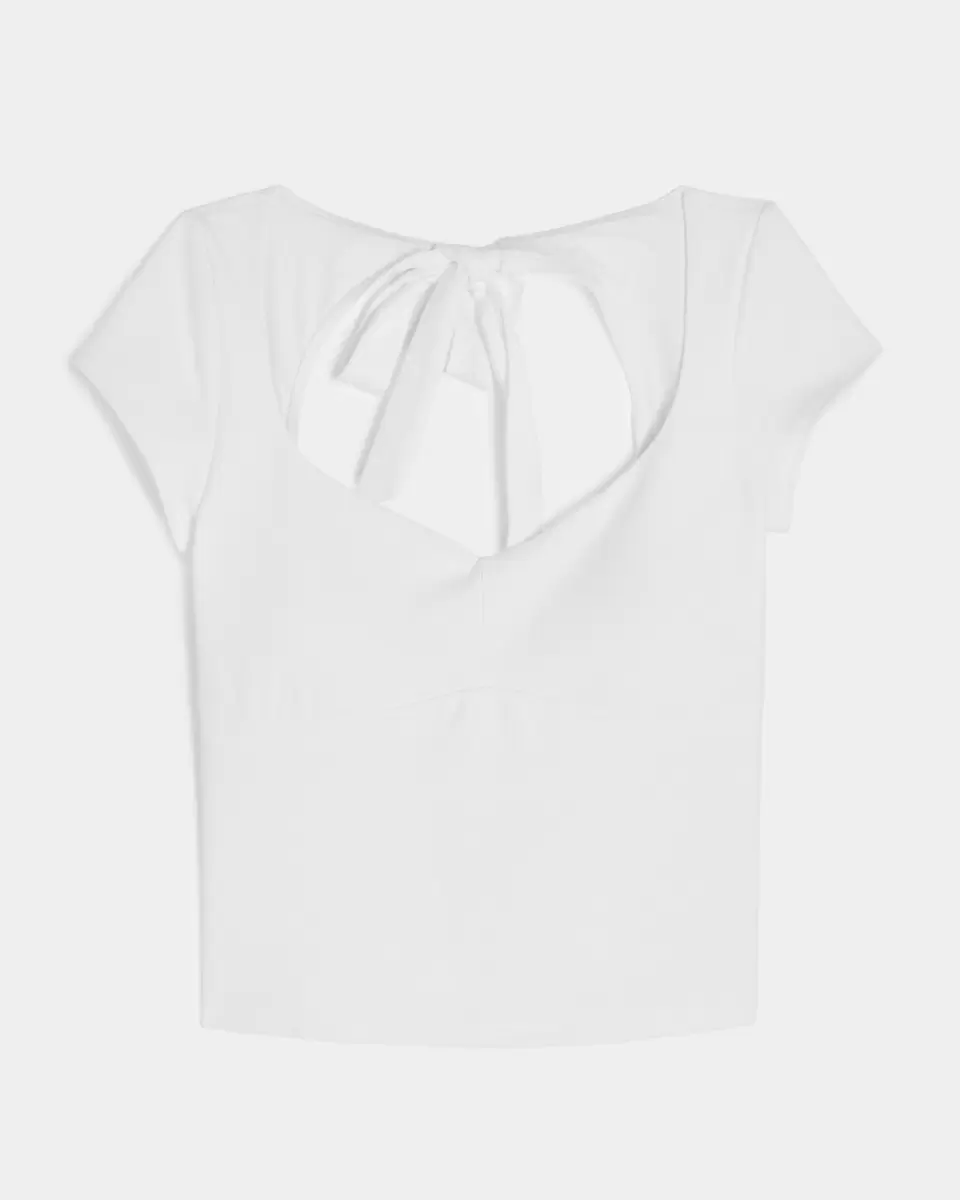 Ten śliczny, supermiękki, sportowy top baletowy ma krótkie rękawy i odkryte plecy z wiązaniem.