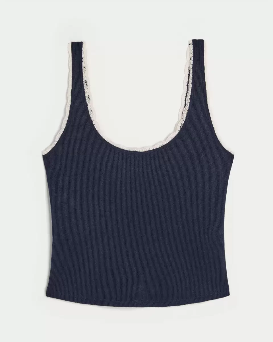Uroczy i przytulny top z supermiękkiej tkaniny o fakturze wafla, z elegancką koronką. Produkt importowany.
