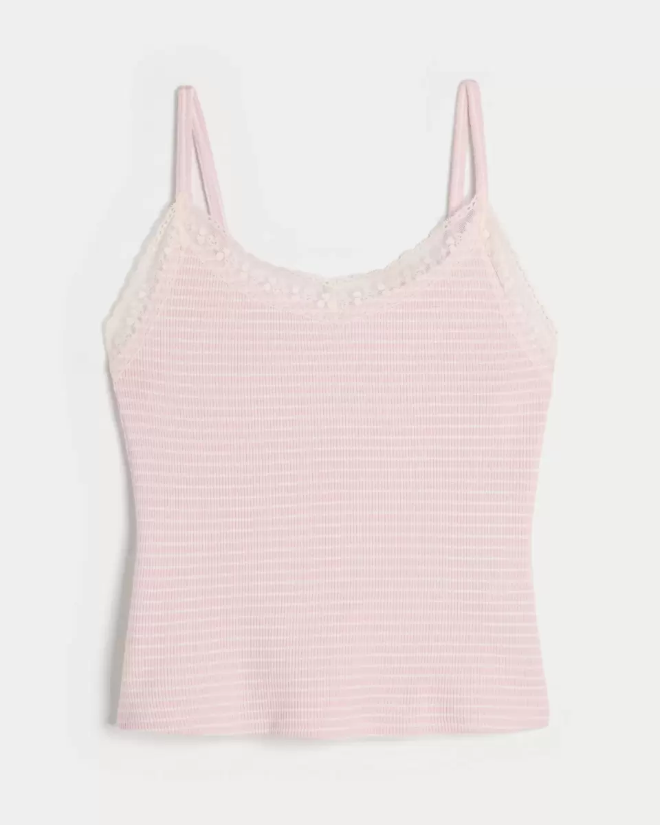 Supermiękka i wygodna koszulka na ramiączkach z tkaniny waflowej, z ładną koronką przy dekolcie. Produkt importowany.