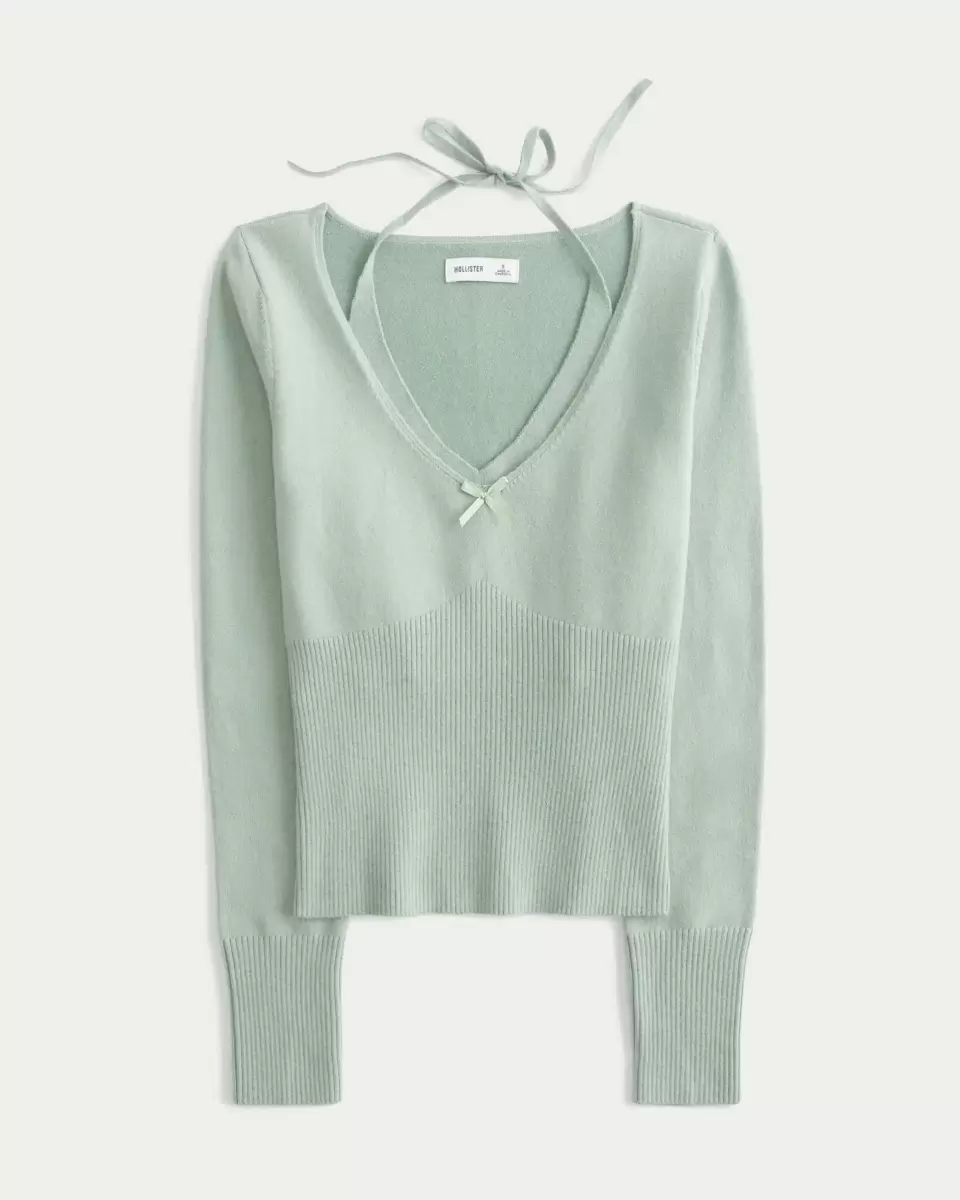 Ten supermiękki sweterek ma dekolt w serek z cienkim wiązaniem pod spodem, co zapewnia warstwowy wygląd. Długie rękawy, ściągacze, dekolt w serek z uroczą kokardką. Dopasowany krój. Importowane.