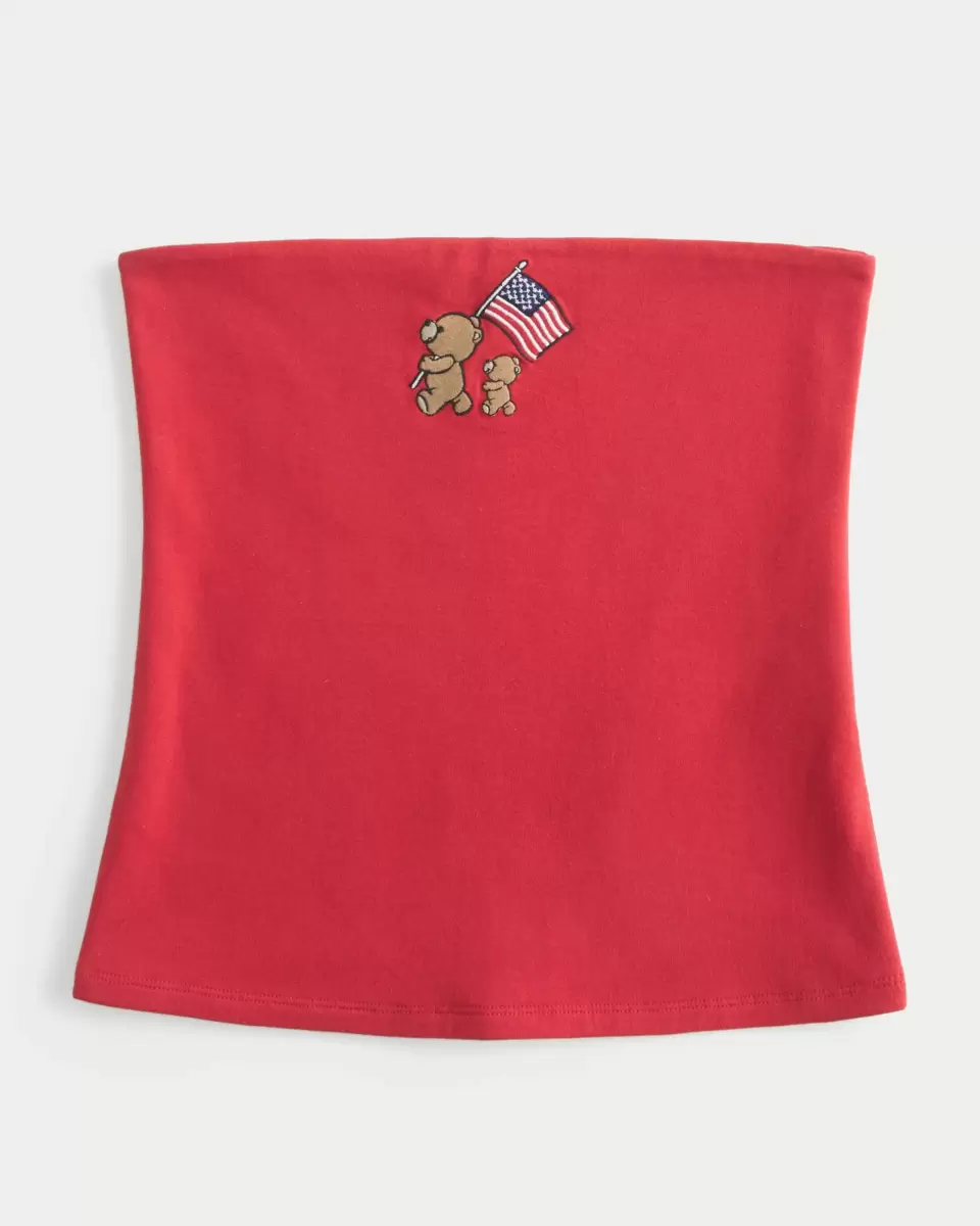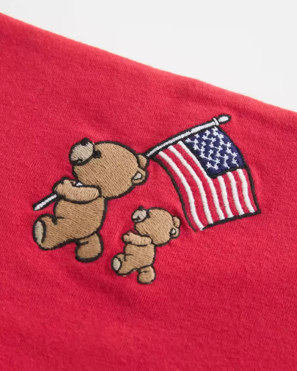 Supermiękki top bez rękawów z uroczym, haftowanym misiem z flagą amerykańską. Dopasowany krój. Produkt importowany.