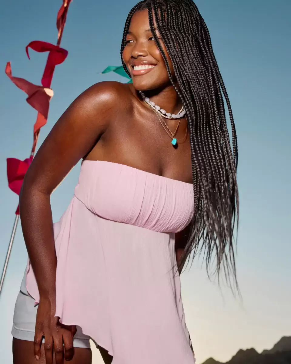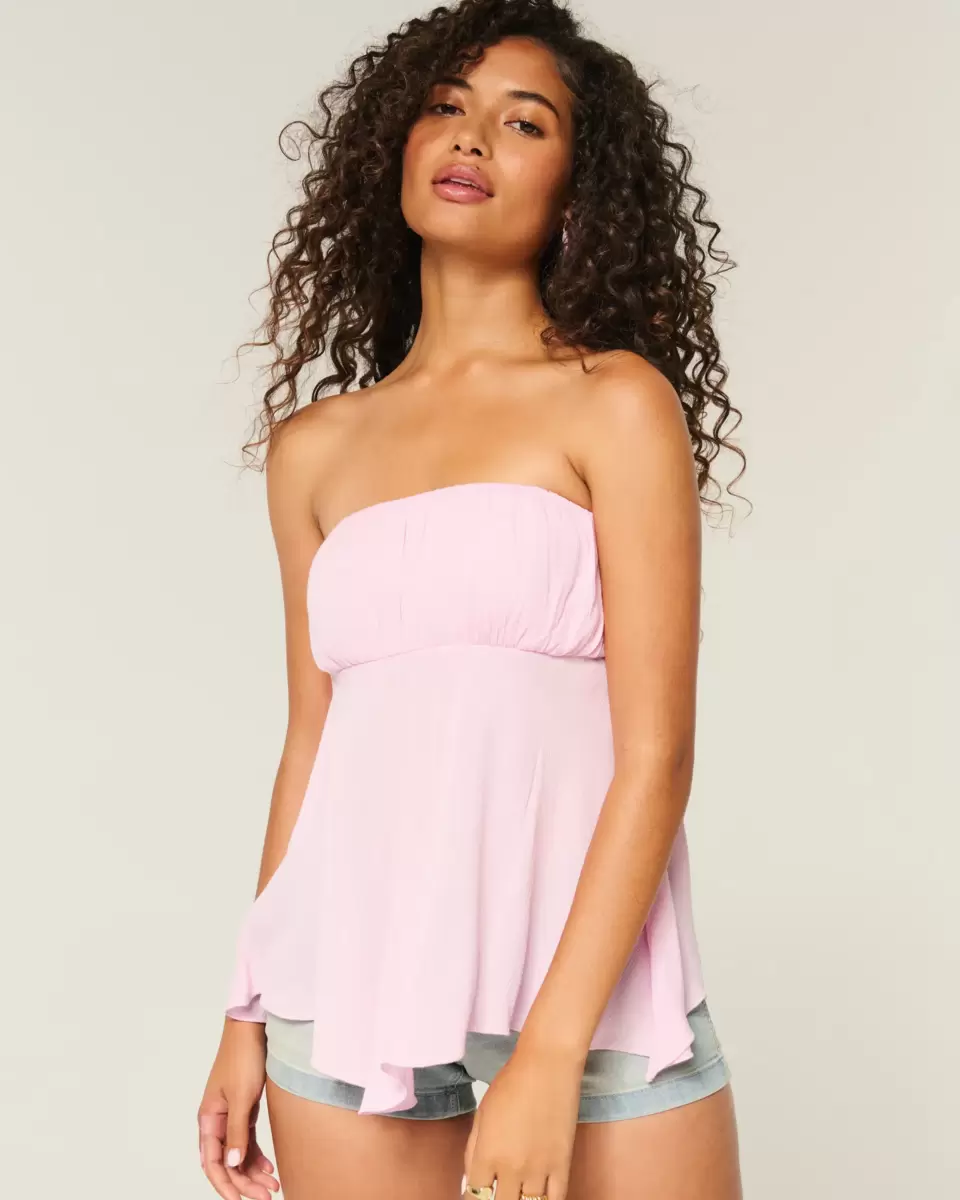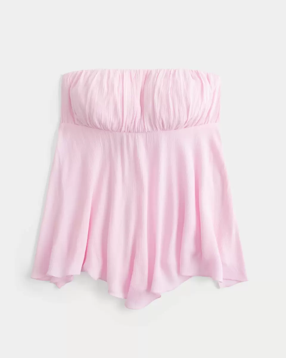 Lekki i supermiękki top wykonany z marszczonej tkaniny i ma ładny, przypominający chusteczkę brzeg. Odpinane ramiączka, marszczenia na biuście. Importowane.