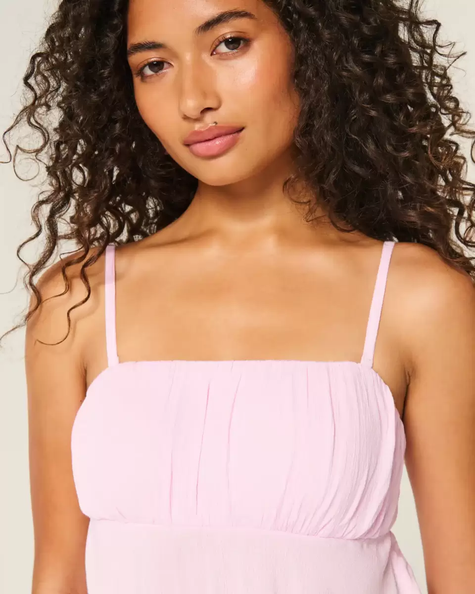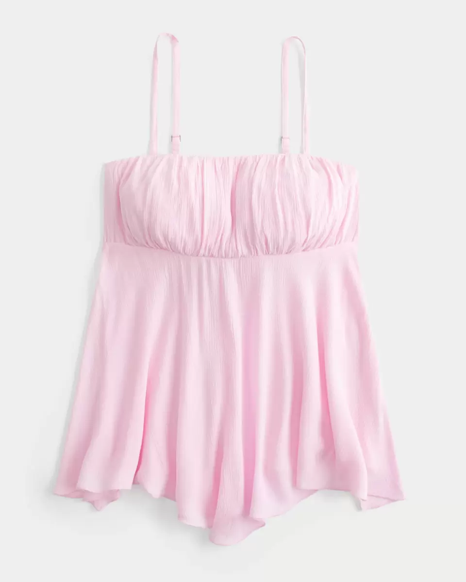 Zwiewny i supermiękki top wykonany z marszczonej tkaniny i ma ładny, przypominający chusteczkę brzeg. Odpinane ramiączka, marszczenia na biuście.