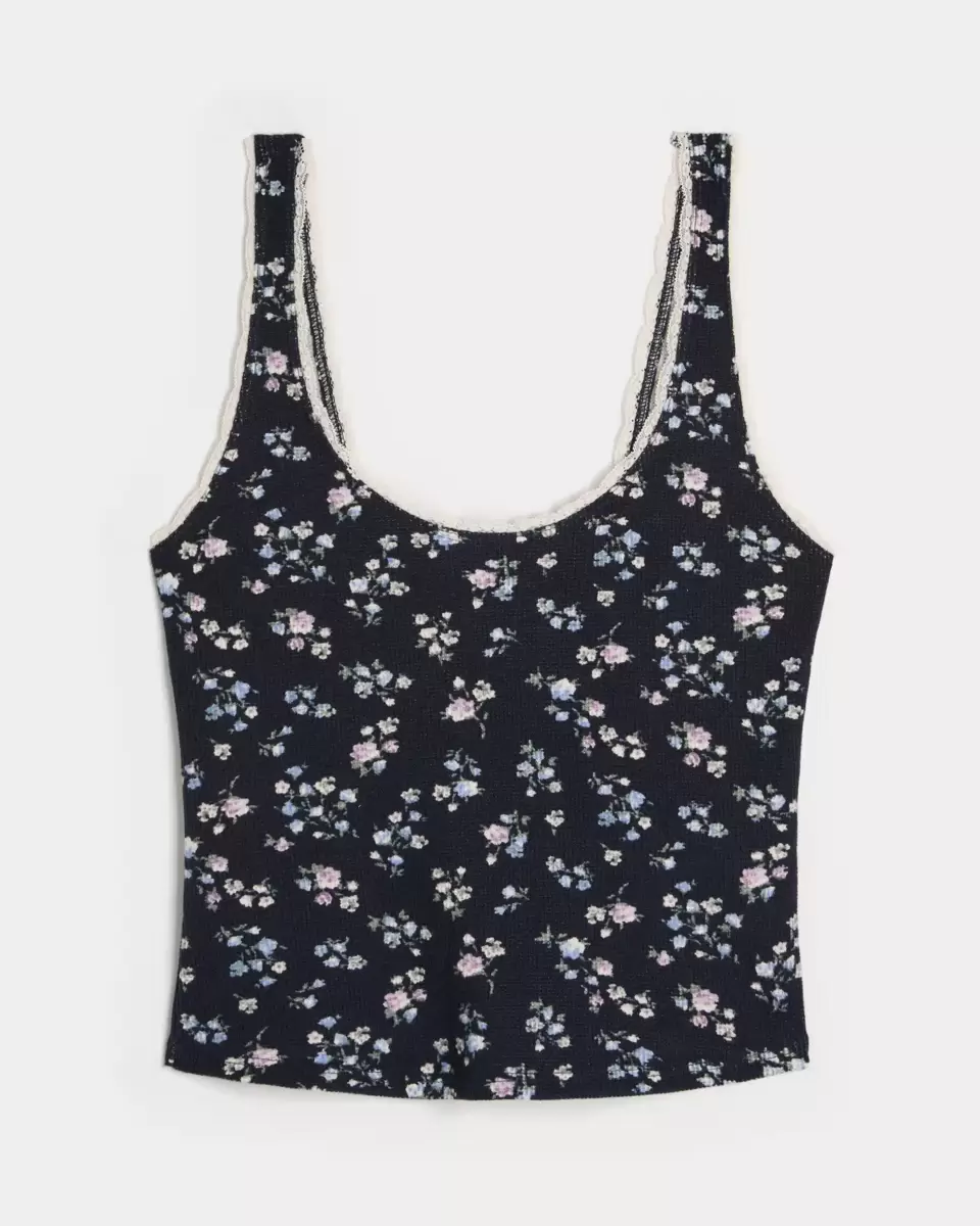Uroczy i wygodny top z supermiękkiej tkaniny waflowej z elegancką koronką przy dekolcie. Produkt importowany.