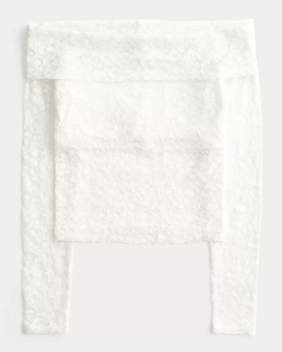 Ładny i supermiękki top z koronki na całej powierzchni, z długimi rękawami i dekoltem odsłaniającym ramiona. Podszewka na biuście. Produkt importowany.