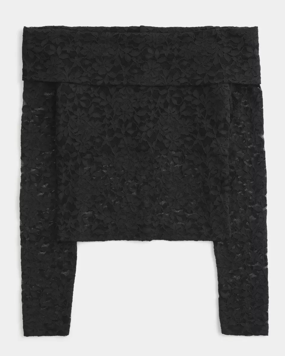 Ładny i supermiękki top z koronki na całej powierzchni, z długimi rękawami i dekoltem odsłaniającym ramiona. Podszewka na biuście. Produkt importowany.