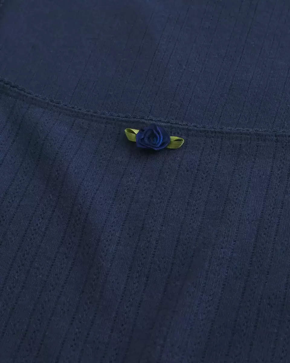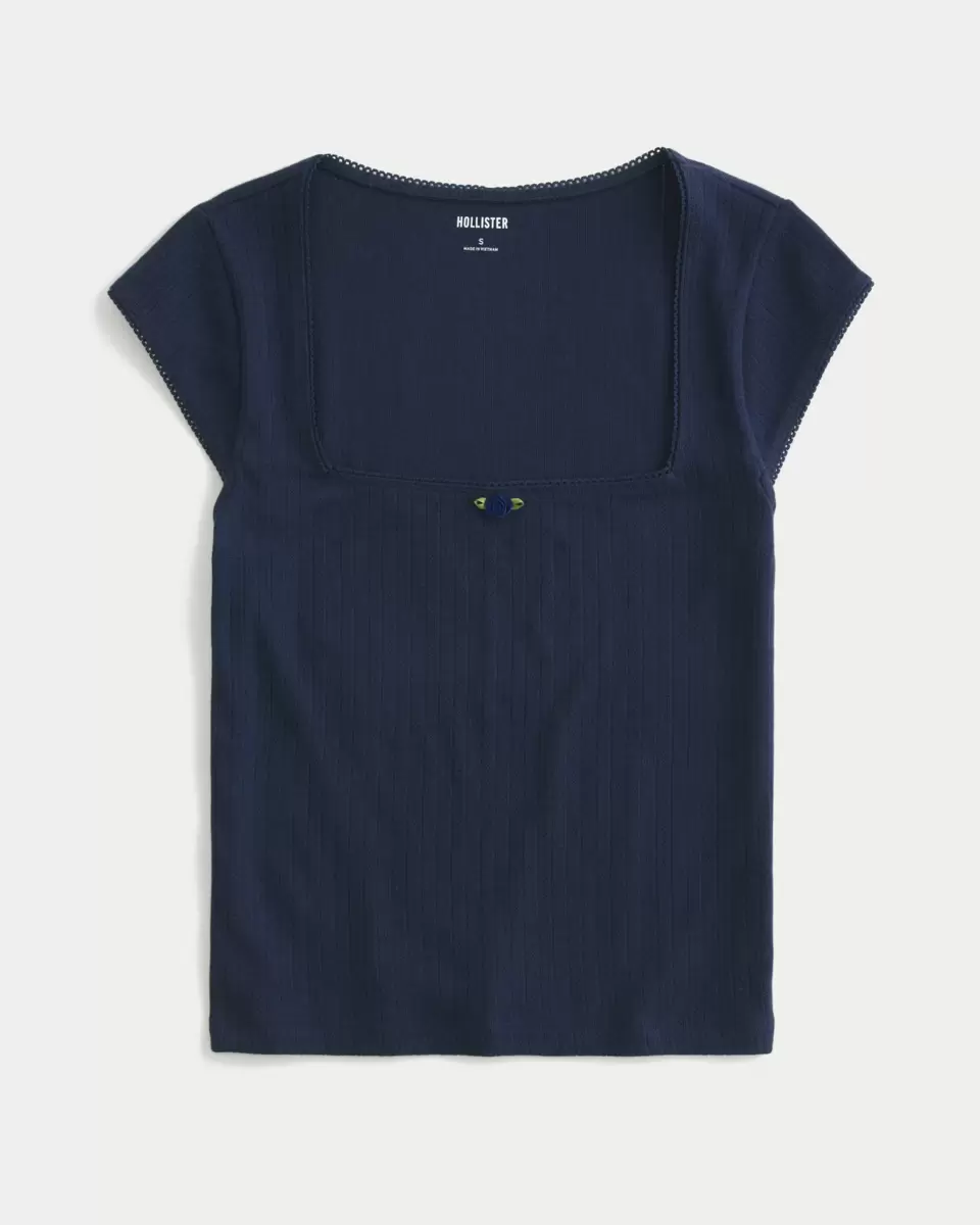 Twój nowy ulubiony top jest wykonany z supermiękkiej tkaniny pointelle i ma kwadratowy dekolt z uroczym rozetkowym detalem pośrodku oraz lamówką pikot. Dopasowany krój. Produkt importowany.