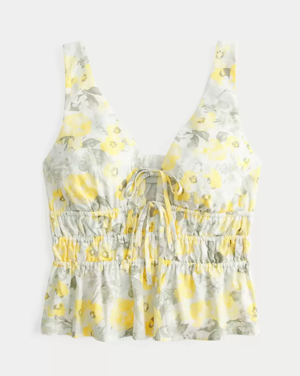 Uroczy top z baskinką z miękkiej mieszanki lnu, z wiązaniem z przodu i wcięciem w talii. Dekolt w serek. Dopasowany krój. Produkt importowany.