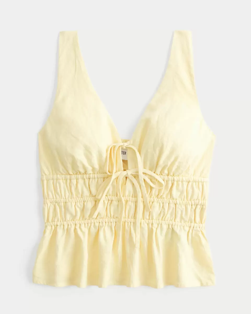 Uroczy top z baskinką z miękkiej mieszanki lnu, z wiązaniem z przodu i wcięciem w talii. Dekolt w serek. Dopasowany krój. Produkt importowany.