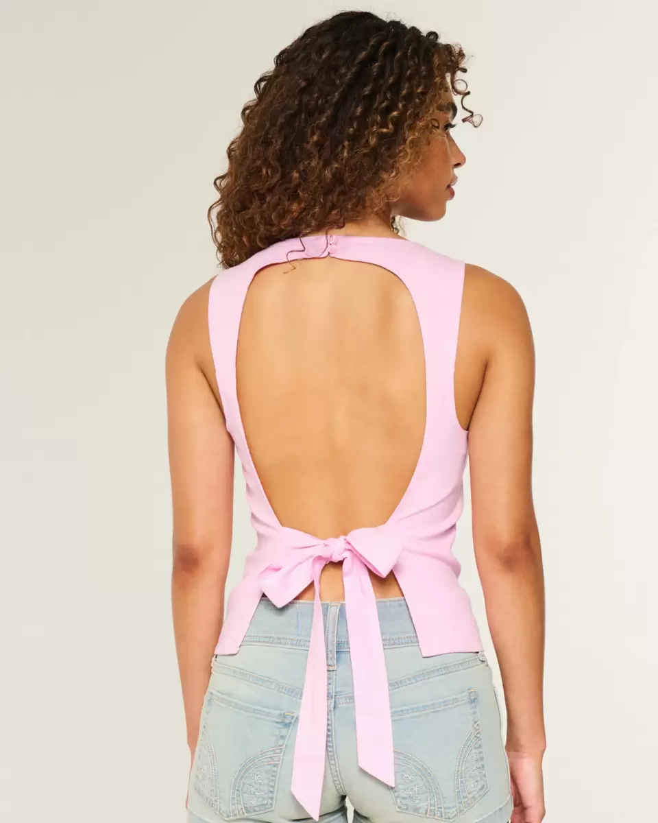 Uroczy top z miękkiej mieszanki lnu, z odkrytymi plecami i wysokim dekoltem. Wiązanie z tyłu, ozdobne szwy. Dopasowany krój. Importowane.