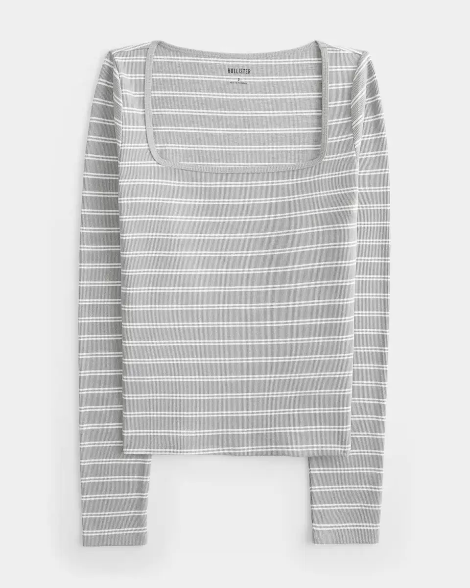 Ultramiękka i wygodna bluzka z długim rękawem, wykonana z prążkowanej tkaniny o bezszwowym wyglądzie i fakturze. Kwadratowy dekolt, długie rękawy. Dopasowany krój.