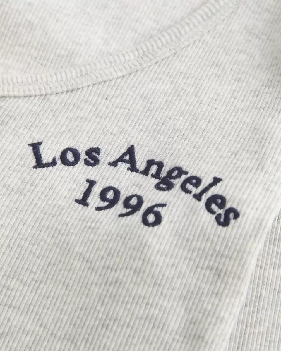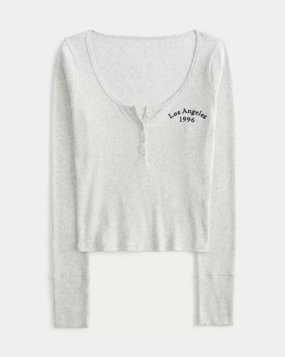 Wykonany z supermiękkiej, prążkowanej tkaniny, ten sweter henley ma zapięcie na guziki i haft Los Angeles na lewej piersi. Długie rękawy. Dopasowany krój. Produkt importowany.