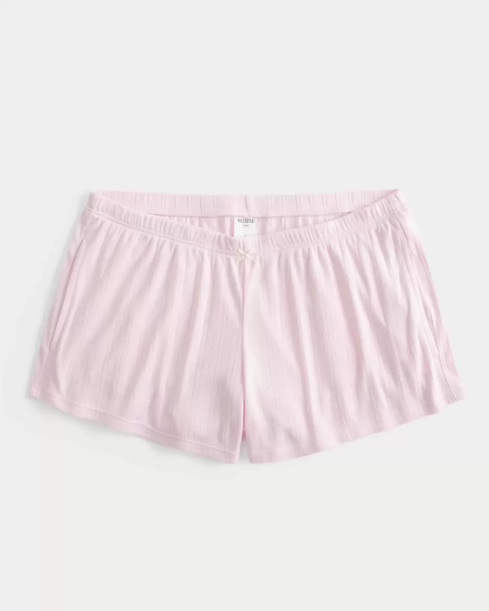 Urocze i przytulne spodenki z supermiękkiej tkaniny pointelle z regulowanym stanem i kieszeniami. Kokardka na środku talii. Produkt importowany.