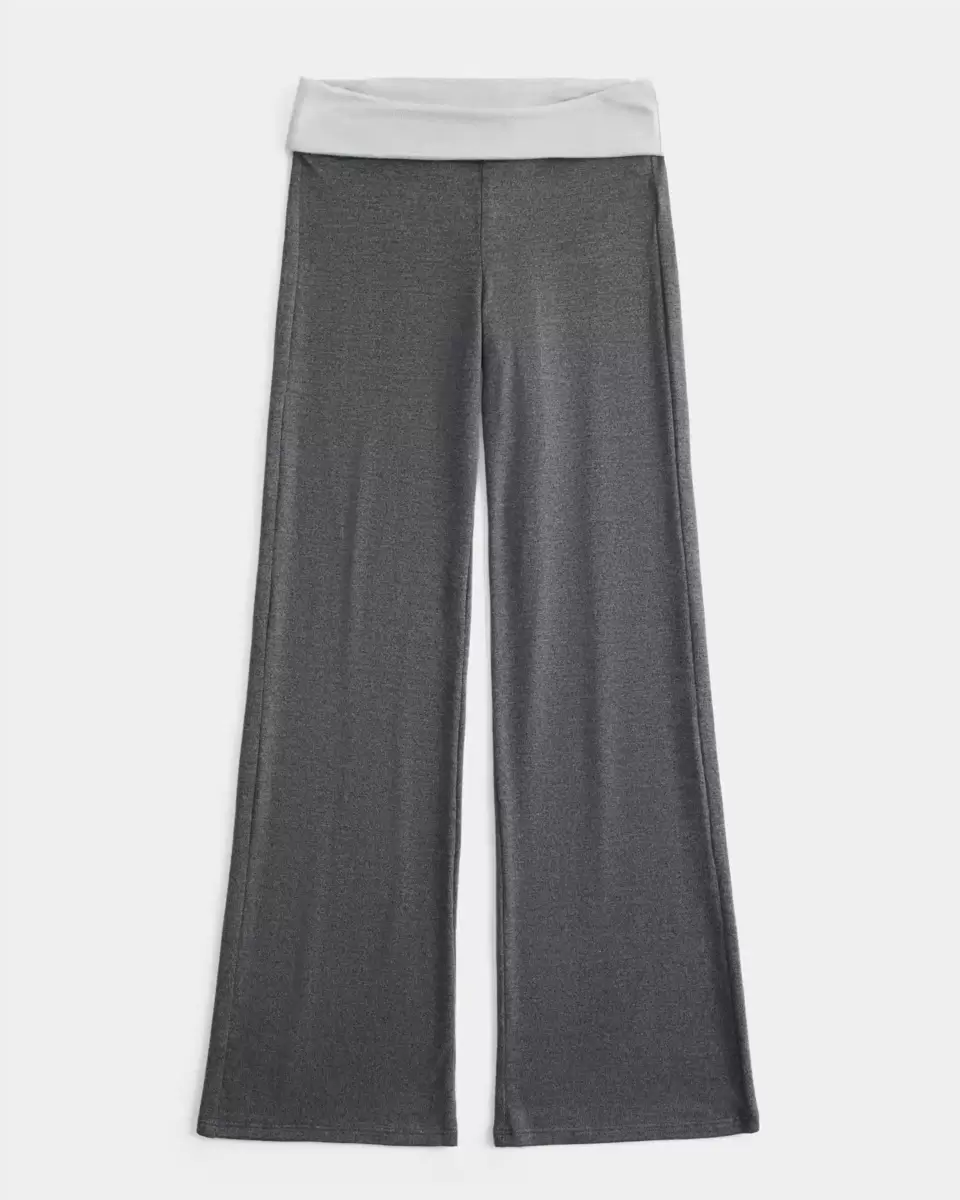 Wygodne i supermiękkie, dzianinowe spodnie dzwony z kolorowym, wywijanym paskiem. Importowane.