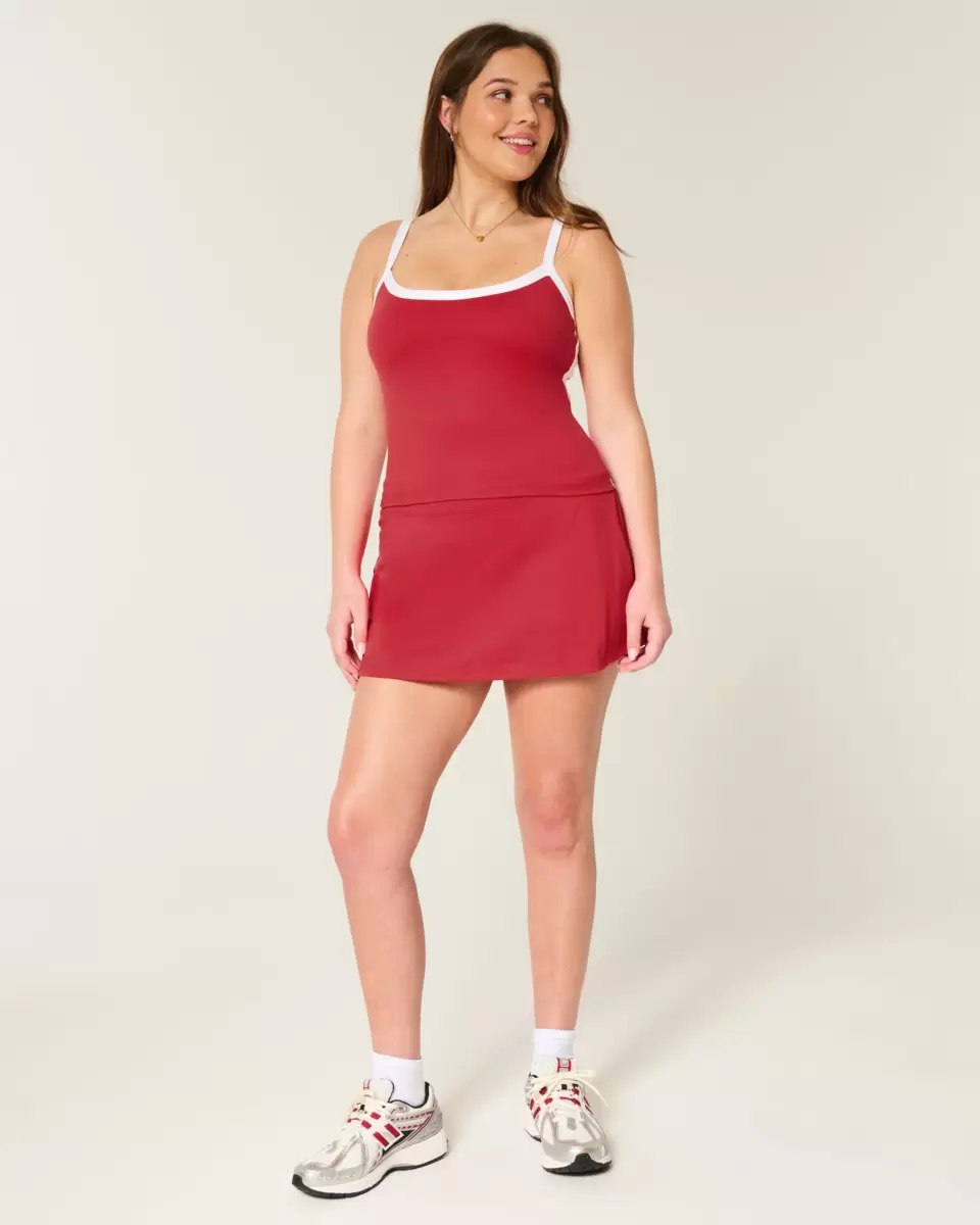 Zaprojektowane z oddychającej, rozciągliwej w czterech kierunkach, odprowadzającej wilgoć tkaniny Recharge o supermiękkim, szczotkowanym wykończeniu. Urocza koszulka na ramiączkach, regulowane ramiączka. Dopasowany krój. Importowane.