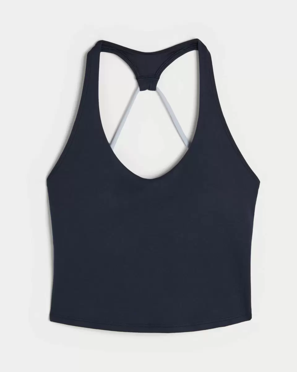 Ten superwygodny top typu halter został wykonany z oddychającego, rozciągliwego w czterech kierunkach, odprowadzającego wilgoć materiału Recharge o supermiękkim, szczotkowanym wykończeniu. Wbudowany biustonosz z wyjmowanymi wkładkami, ramiączka typu halter i ozdobne paski na plecach. Importowane.