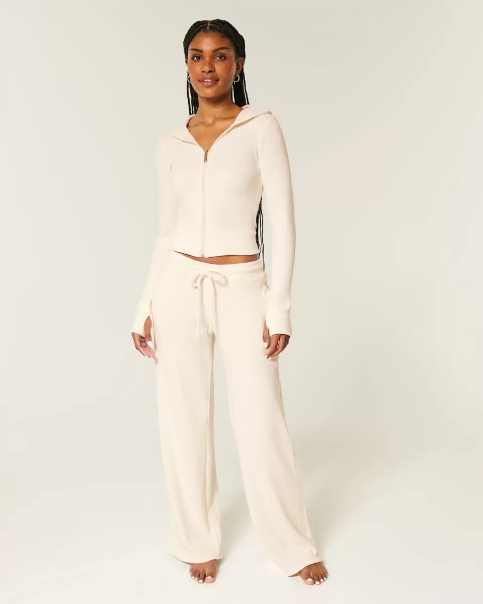 Supermiękkie spodnie z tkaniny waflowej, z prostą nogawką i ściągaczem w pasie. Ładne koronkowe detale, kieszenie. Produkt importowany.