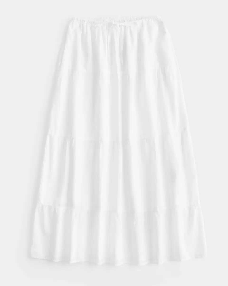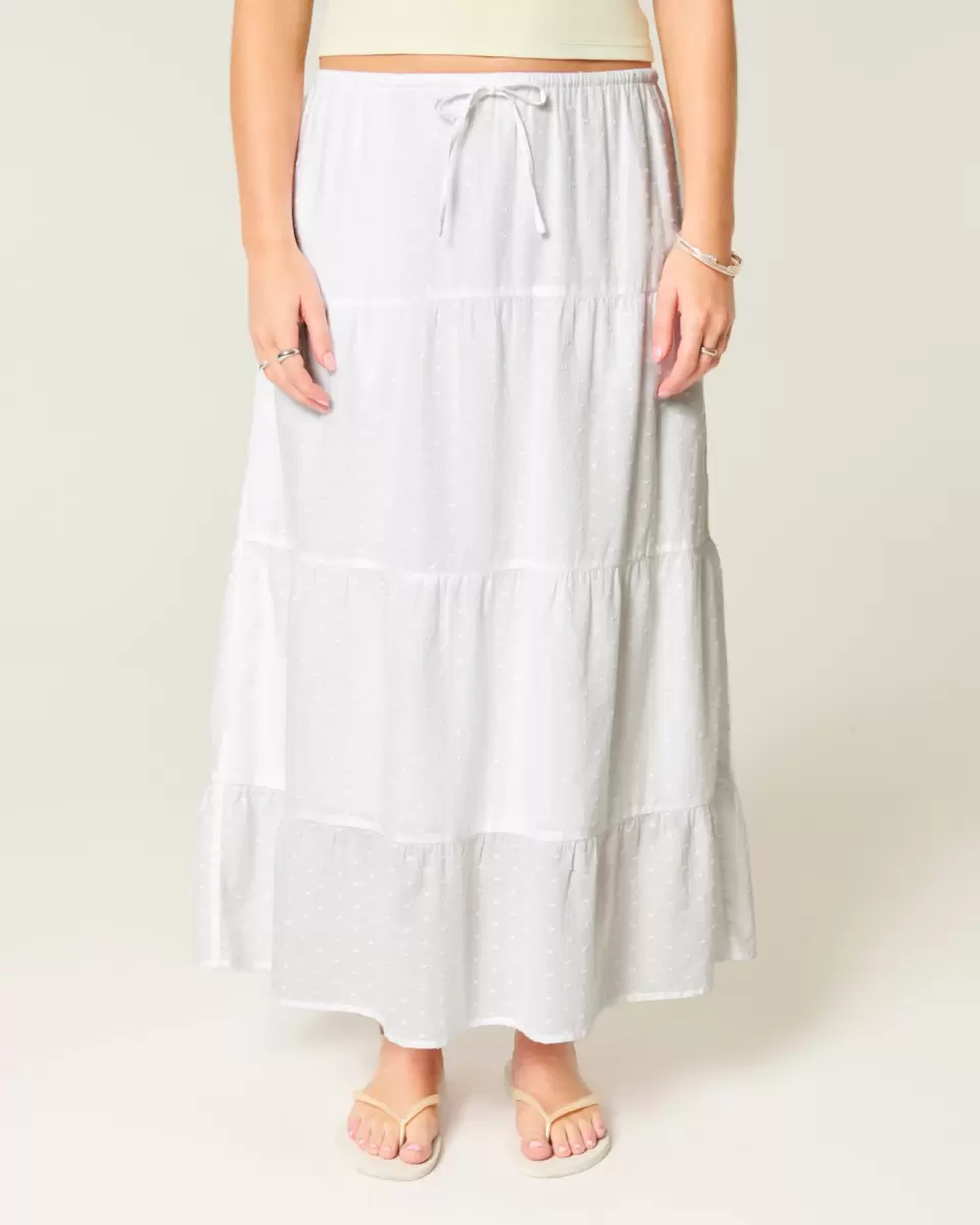 Zwiewna i supermiękka, ta spódnica o długości maxi ma regulowany stan i teksturowany materiał w kropki. Warstwowe detale. Produkt importowany.