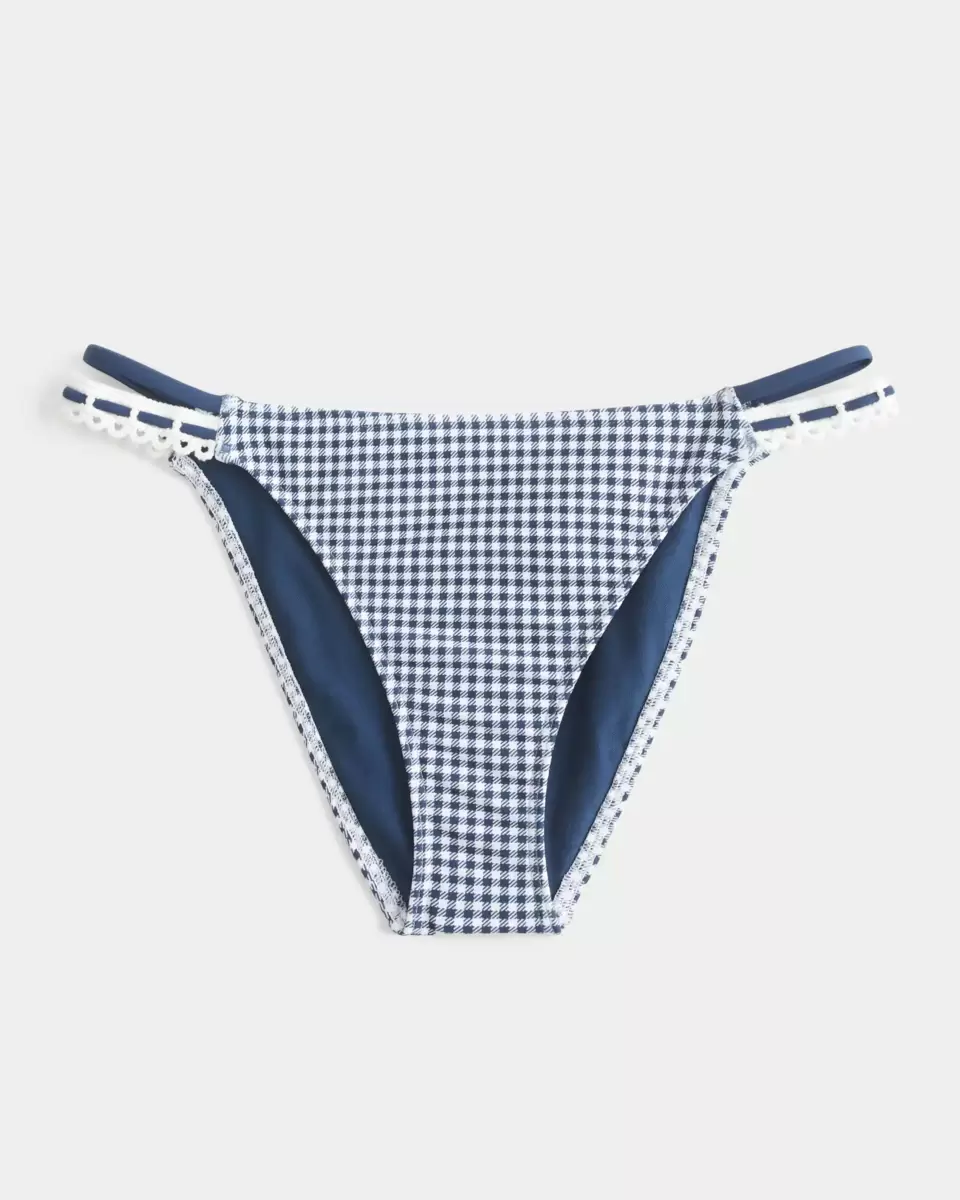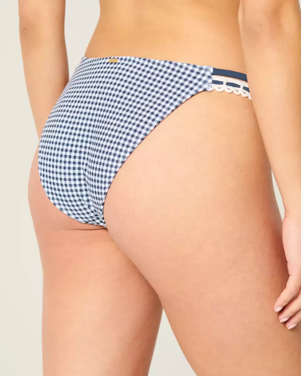 Urocze figi od bikini z podwójnymi ramiączkami po bokach i szydełkowym wykończeniem. Elastyczne, kryjące. Produkt importowany.