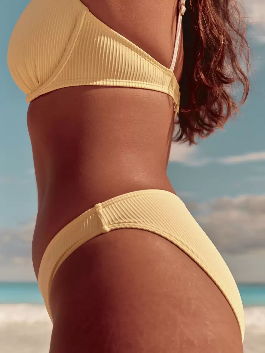 Te urocze figi od bikini wykonane są z miękkiego, prążkowanego materiału. Klasyczne, kryjące bikini.