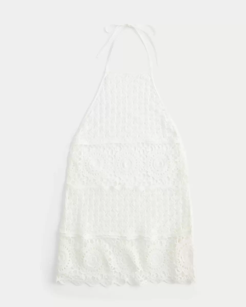 Ta śliczna i wygodna sukienka-okrycie kąpielowe jest wykonana z supermiękkiej tkaniny szydełkowej z ładnymi wzorami na całej powierzchni. Ramiączka typu halter. Produkt importowany.